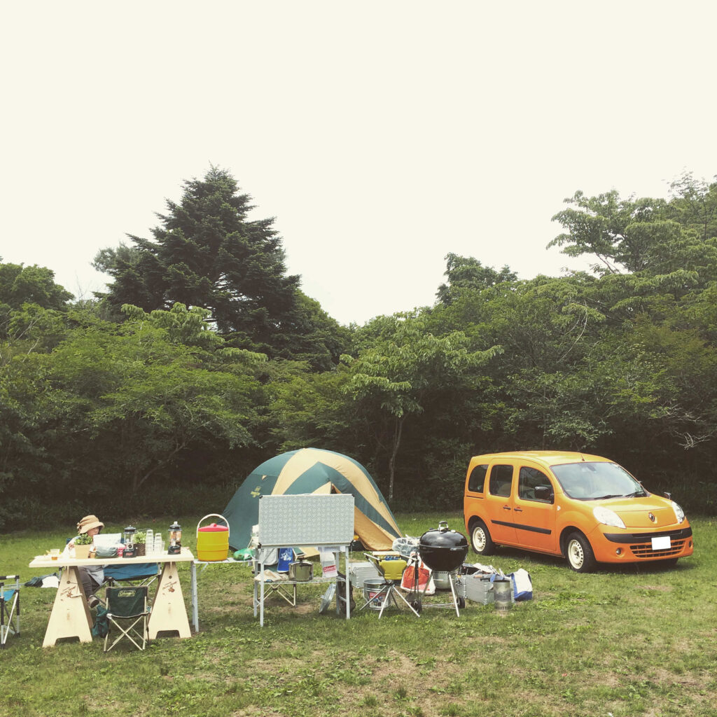 初代オレンジカングーで富士のふもとっぱらキャンプ場に