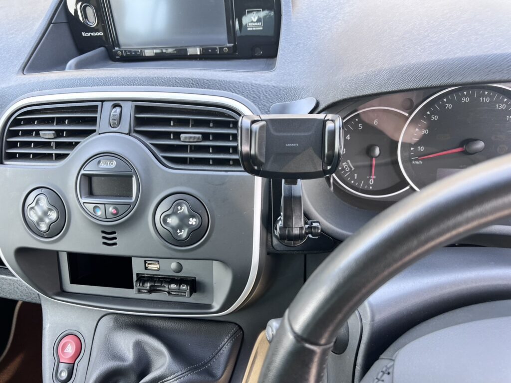 カングー専用のスマホフィットクリップ式に前後ドラレコを